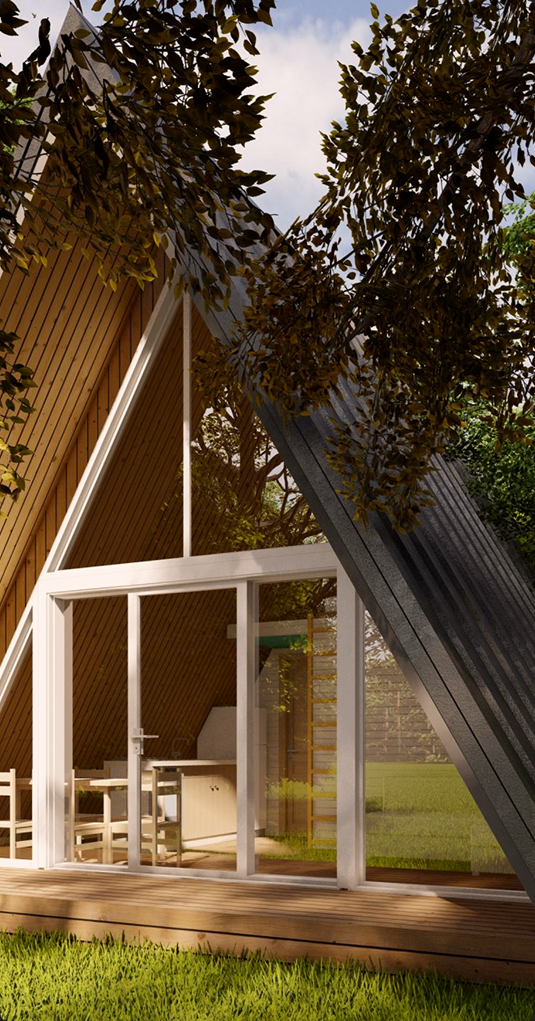 A-FRAME 52 м² — це сучасний каркасний будинок із впізнаваною трикутною архітектурою, що поєднує емоцію затишку, функціональність і простоту. Ідеальний варіант для 1–2 осіб, заміського відпочинку, глемпінгу або орендного бізнесу.